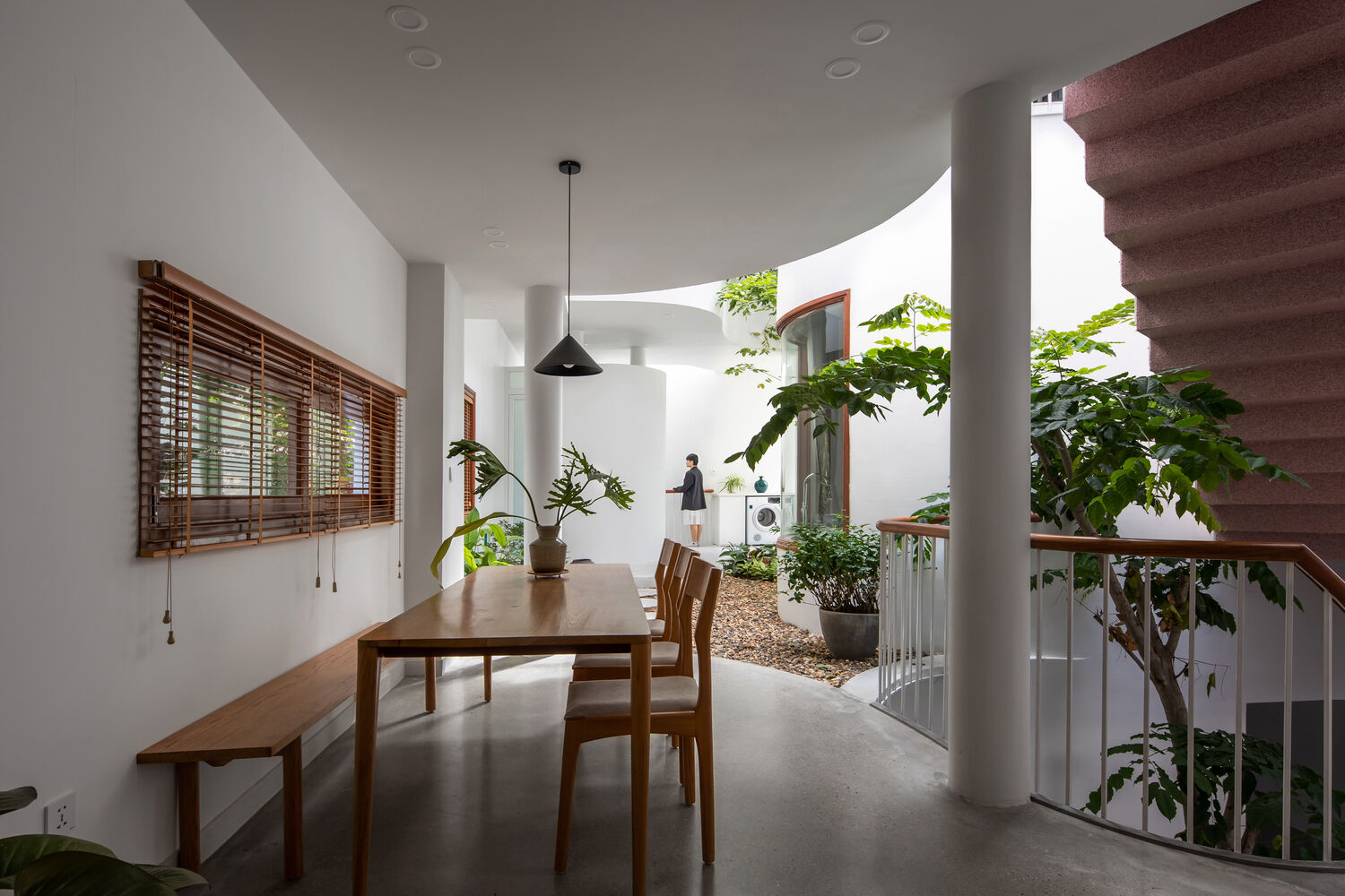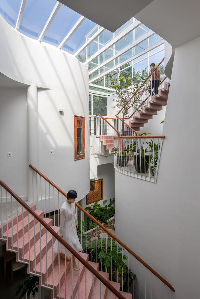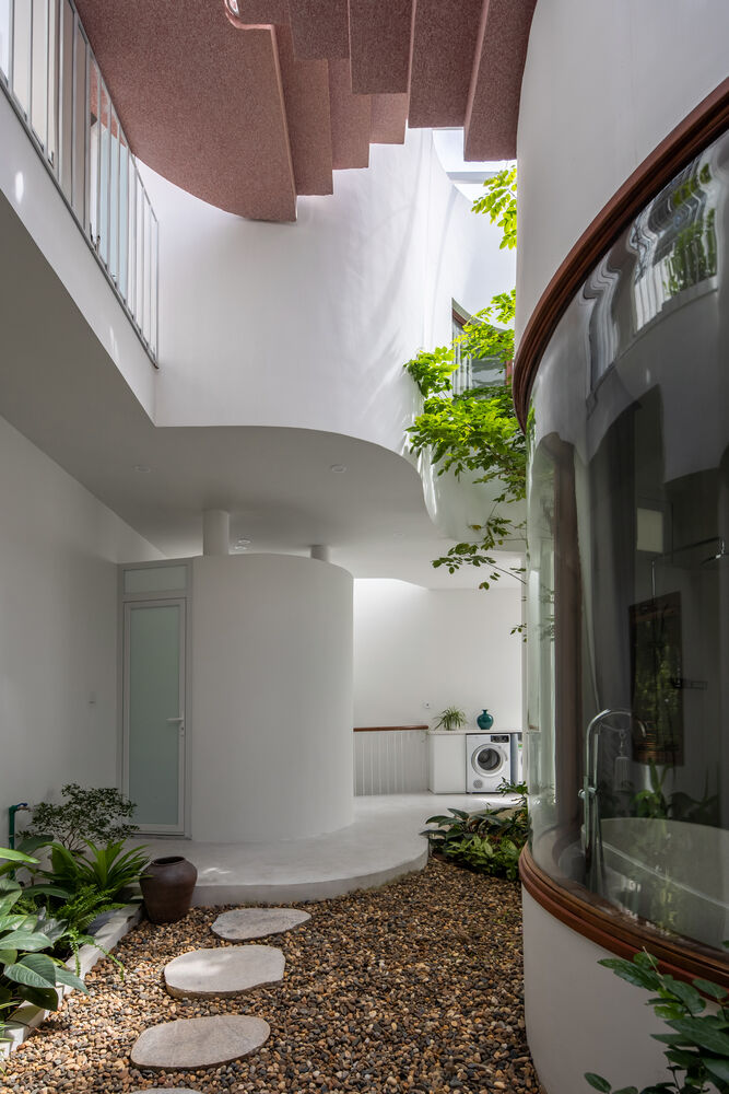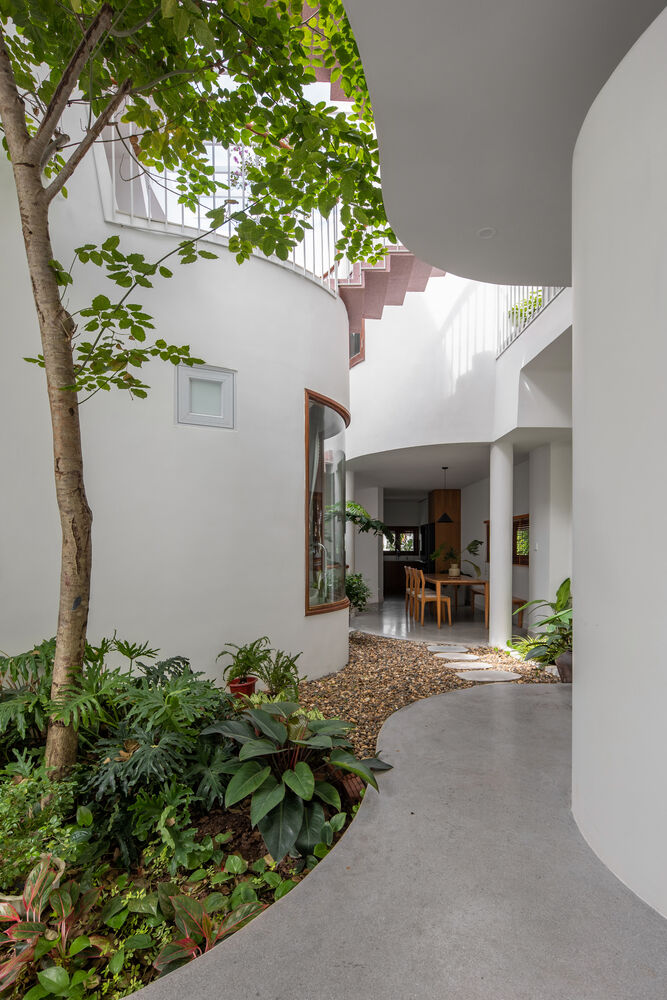 | Phía trong nhà là không gian lõi uốn lượn tạo nên một trải nghiệm khung nhìn thú vị cho các thành viên gia đình. |
