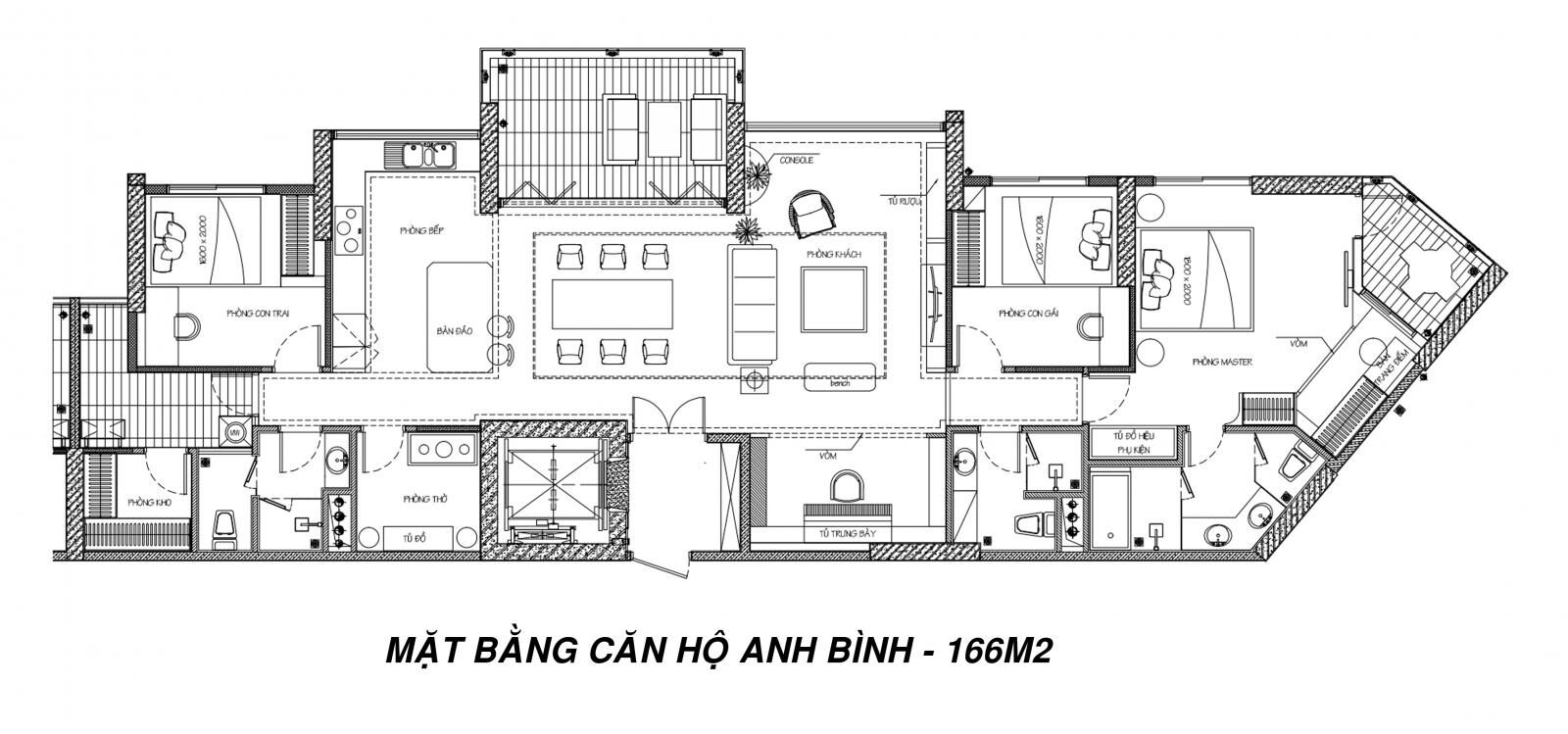 | Mặt bằng thiết kế nội thất căn hộ 166m2 |